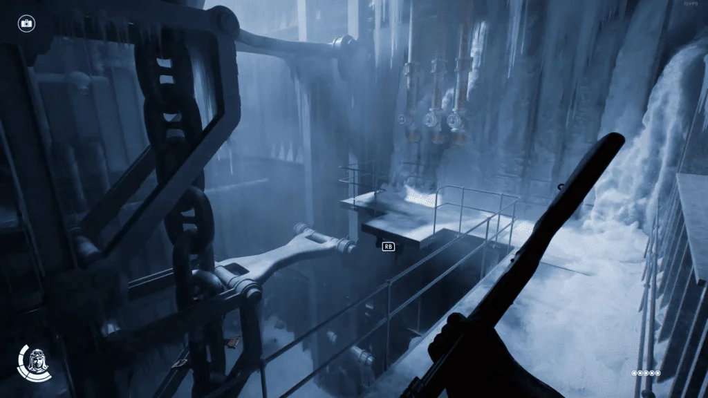 一旦你爬上梯子到楼上,你就会进入广播室。在这里,拿出相机,拍下上面被冰柱包围的布满灰尘的显示器和机器。