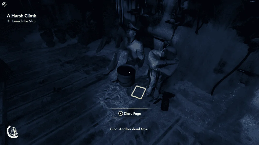 前往甲板的东侧,您会在地板上找到通往底层的梯子。穿过梯子到达房间,你会在办公室休息室中央的桌子中间找到《船长日记》。