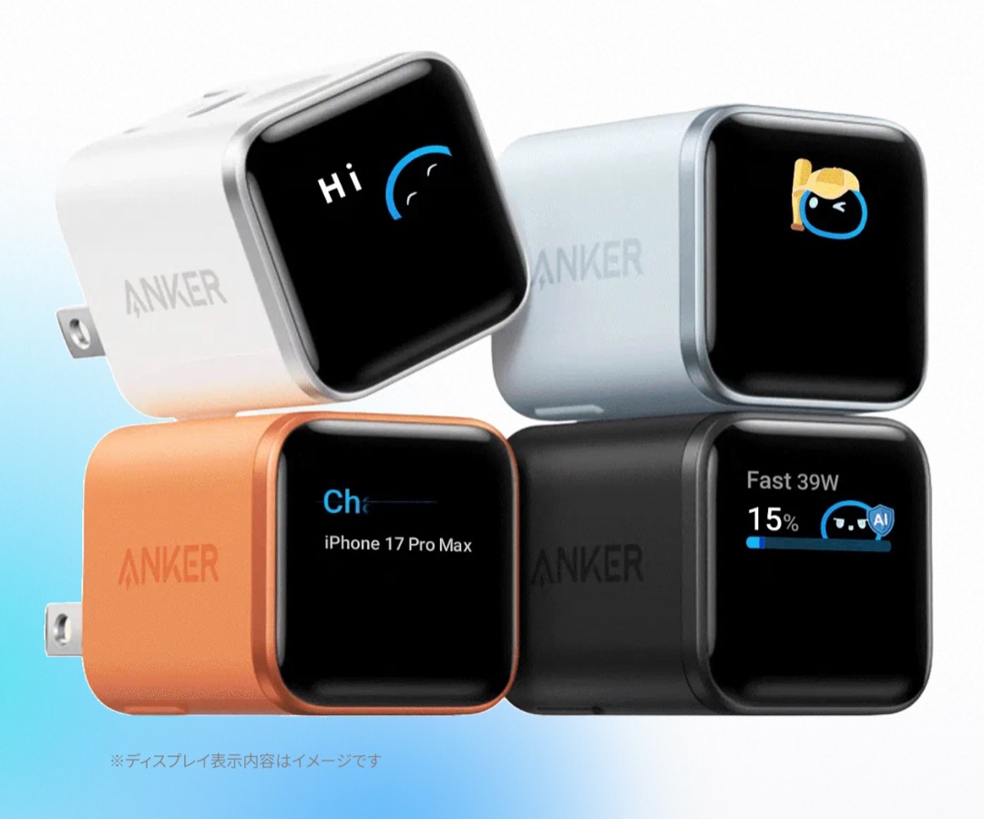 Anker Japan在CES2026上宣布,Anker Nano Charger(45W,显示屏,旋转插头),一款配备智能显示屏、可自动检测 iPhone 型号的快速充电器宣布在日本发售。